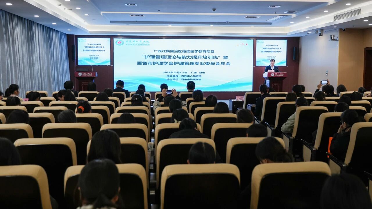 我院举办2025年护理管理理论与能力提升培训班暨百色市护理学会护理管理专业委员会年会 发布时间:2025-12-08 08:38 本文来源: 宣传科 分享到: 12月5日至6日,我院在综合大楼四楼第二学术厅举办护理管理理论与能力提升培训班暨百色市护理学会护理管理专业委员会年会。百色市十二个县(市、区)医院护理代表齐聚一堂,共学先进理念、同探实践路径。我院党委委员、副院长陆吉利参加开班仪式并致辞,开班仪式由医院护理部主任韦永鲜主持。 陆吉利在致辞中指出,本次培训班邀请区内外知名专家授课,培训内容涵盖了学科建设、人才队伍建设、人文关怀等,希望全体学员珍惜学习机会,学有所思、学有所悟、学有所用,为区域护理事业高质量发展注入新动能,更好地服务群众。 在授课环节,中山大学附属第一医院广西医院邱小芩主任护师、中山大学附属第八医院符霞主任护师、广西医科大学附属第二医院梁榕主任护师、广西壮族自治区江滨医院黄春丽主任护师等护理专家,分别围绕“规范管理提质量 标准引领促发展”“国际视野下临床思维进阶”“护理信息化建设与实践”“康复护理在临床护理中的应用与价值”等内容分享前沿经验;右江民族医学院黄芳艳教授、右江民族医学院附属医院陈玉科副主任护师等区内专家,带来人文护理、重点专科建设等专题讲解。 另外,我院朱麦颖副主任护师、覃丽锦主任护师、韦永鲜主任护师、龙隆主任护师、农惠玲副主任护师、马黎黎副主任护师、班银燕主任护师、廖胜霞副主任护师,以及靖西市人民医院黎霞主任护师、百色市妇幼保健院李艺主任护师、平果市人民医院葛静副主任护师、田林县人民医院杨慧芬副主任护师、右江区人民医院黎莉荣副主任护师、凌云县人民医院杨艳萍主管护师、百色市中医医院农海琴副主任护师等本土护理专家,结合临床实践,分享了案例收集、多元化教学、数据驱动质量控制、人工智能应用、护理质量管理等方面的经验。 期间,还举行了百色市护理学会护理管理专业委员会扩大会议,总结、布置了相关工作。 为期两天的培训内容针对性强、实用性高,既有理论高度,又有实践深度,为全市护理管理者搭建了交流学习的优质平台。 扫一扫 手机端浏览