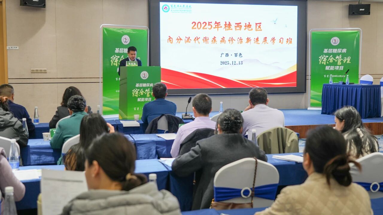 我院举办2025年桂西地区内分泌代谢性疾病诊治新进展学习班 发布时间:2025-12-15 09:36 本文来源: 宣传科 分享到: 12月13日,由我院主办的2025年桂西地区内分泌代谢性疾病诊治新进展学习班在百色市召开,来自百色市及周边地区的100余名内分泌科及相关学科医务人员参加了培训。 我院副院长朱征西参加开班仪式并致辞,他强调内分泌代谢性疾病诊治水平对区域医疗服务质量的重要性,希望学员珍惜交流机会,将所学转化为临床能力,为群众健康保驾护航。学习班开班仪式由内分泌科主任杨斌主任医师主持。 在上午学术授课环节,广西壮族自治区人民医院黄建皓主任医师带来《从病理到临床,探讨GLP-1RA与基础胰岛素联合应用的重要性》专题分享;右江民族医学院附属医院吴标良主任医师解读《基层应用GLP-1RA治疗T2DM的指导建议》;桂平市中医医院李燕主治医师和田东县中医医院黄丽群副主任医师分别分享交流实践案例,随后潘美时、罗清艳、黄海波三位专家围绕上午内容展开讨论。 午后学术活动继续,云南省文山州人民医院刘江主任医师解读《ADA:糖尿病患者MASLD筛查和早期干预共识报告》;我院杨斌主任医师分享《难治性痛风的精准治疗》;广西医科大学第一附属医院秦映芬主任医师探讨《甲状腺癌TSH治疗的现状和思考》;广西医科大学第一附属医院梁敏主任医师讲解《抗骨质疏松药物的序贯治疗》;广西国际壮医医院胡璟主任医师解读《超重/肥胖多囊卵巢综合征患者体重管理内分泌专家共识》;我院王勇副主任医师带来《取长补短共护心肾肝-吡格列酮联合SGLT-2抑制剂的方案探讨》,随后陈秀林、李雄、韦超健、黄丽群、田宏华五位专家围绕下午内容互动讨论。 本次学习班的举办,传播了内分泌代谢性疾病诊治新知识,有助于百色市及周边地区内分泌代谢性疾病诊治水平同质化的提升。 扫一扫 手机端浏览