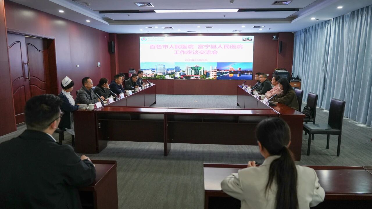 云南省富宁县人民医院一行到我院交流工作 发布时间:2025-12-29 09:11 本文来源: 宣传科 分享到: 12月29日上午,云南省富宁县人民医院副院长岑元丰一行到我院,在综合大楼四楼第一学术厅开展中医专题工作座谈交流。医院党委委员、副院长周昌静及相关职能部门负责人参加了会议。 会上,周昌静副院长对富宁县人民医院一行的到来表示欢迎,并就医院中医发展情况作介绍。随后,富宁县人民医院副院长岑元丰说明此次交流来意,介绍了富宁县人民医院的基本概况、中医科适宜技术及运营发展现状。 接着,我院外联部(中医拓展部)负责人黄文甫作中医拓展工作开展情况介绍,分享了医院的实践经验与成效。在专题交流环节,双方围绕中医科适宜技术推广、学科运营管理等议题展开深入交流。 会后,富宁县人民医院一行实地参观了医院中医科病区、国医堂,感受中医诊疗环境与特色服务模式。 此次活动搭建了两院交流的平台,促进了优质医疗资源的共享互鉴。双方表示将进一步深化交流,持续提升中医药诊疗水平,为两地群众提供更优质、高效的中医药健康服务。 扫一扫 手机端浏览